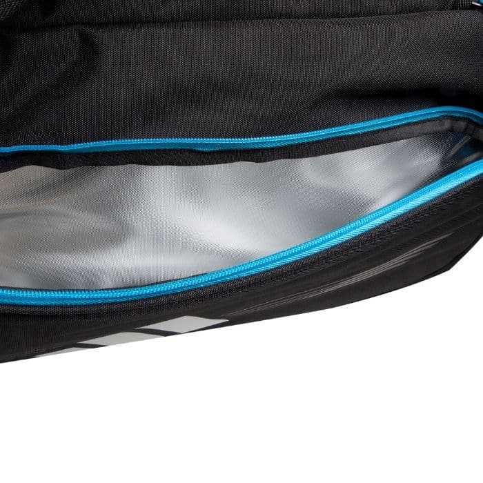 • Dos compartimentos laterales térmicos: Diseñados para mantener tus palas protegidas y a la temperatura adecuada.